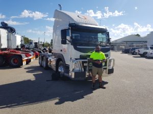 Since February 2018, Carisbrook has operated a new shuttle from Malaga to Northam. We have purchased a new Volvo Prime Mover and a Krueger Pocket Set for this run. This has been sign written with new Mauri branding. Shuttle Driver, Paul Kennison is tasked with looking after the new truck.